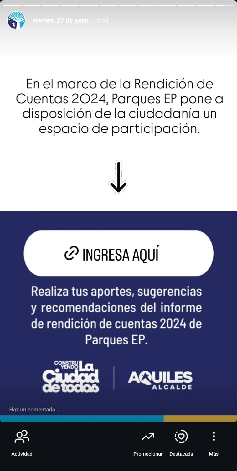 5. Publicación de enlace para recepción de Aportes Ciudadanos en Instagram.